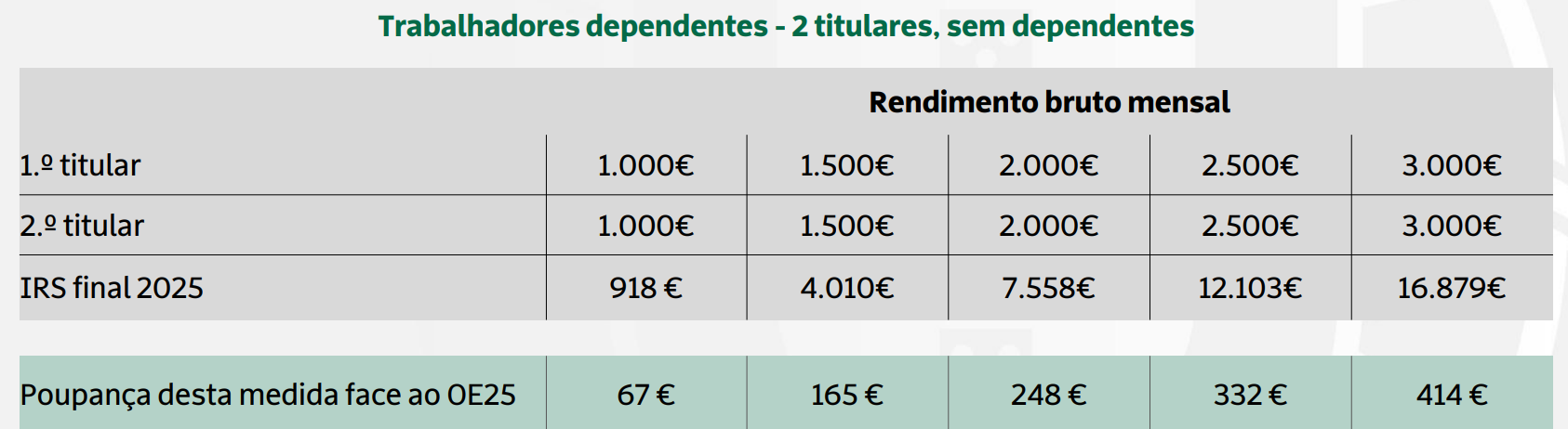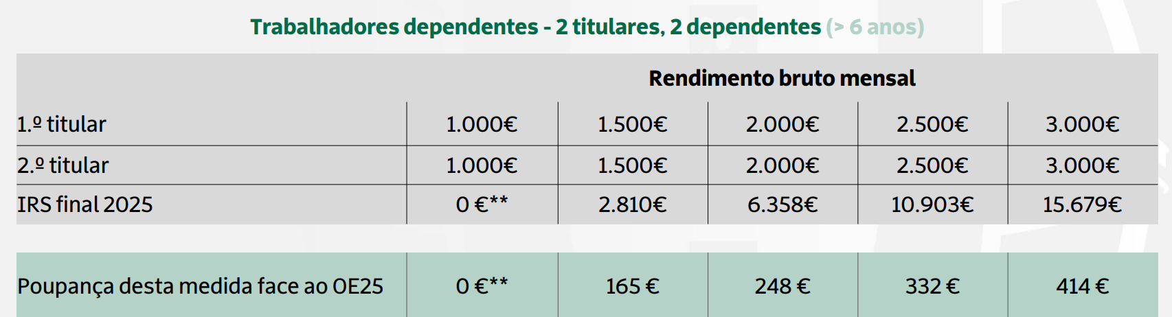 Mas o impacto vai depender do nível de rendimentos e da composição do agregado familiar, como se pode ver nos exemplos partilhados pelo Governo: